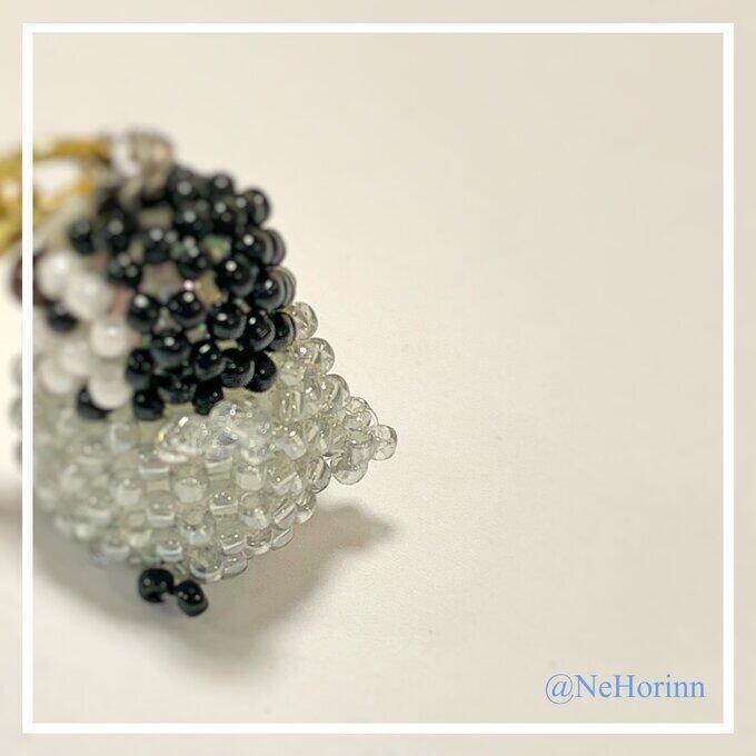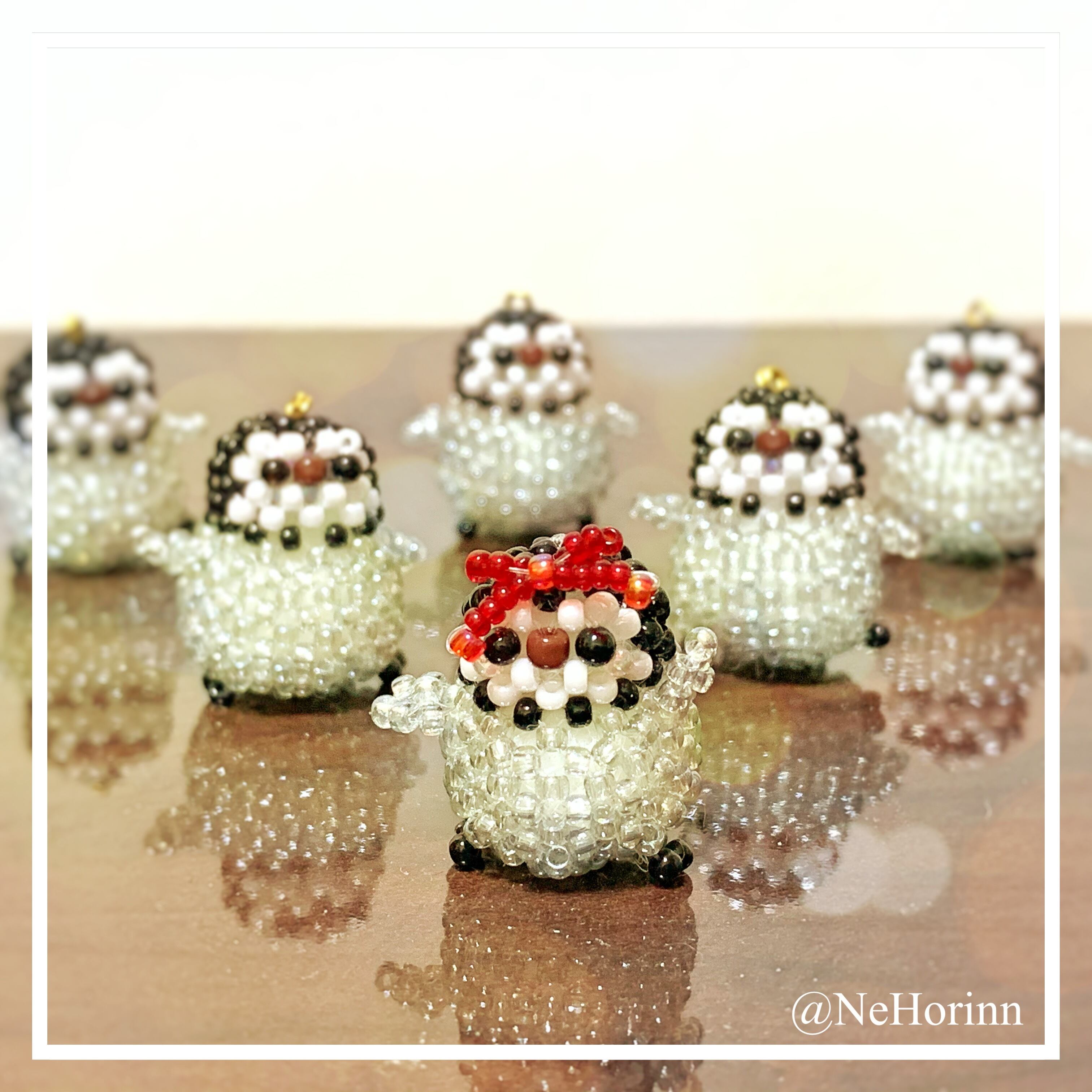 ペンギンの赤ちゃんを丸小ビーズを編んで表現しました