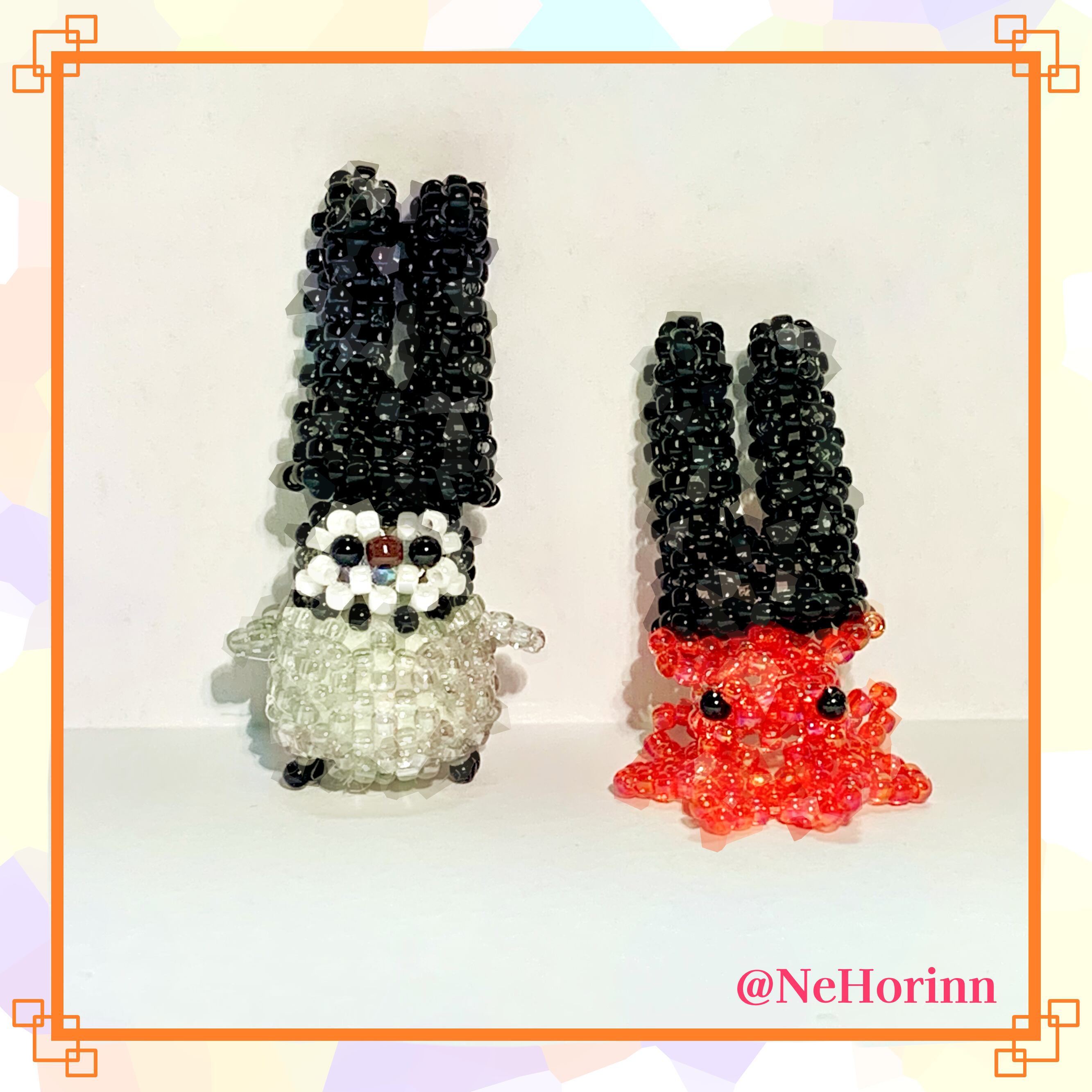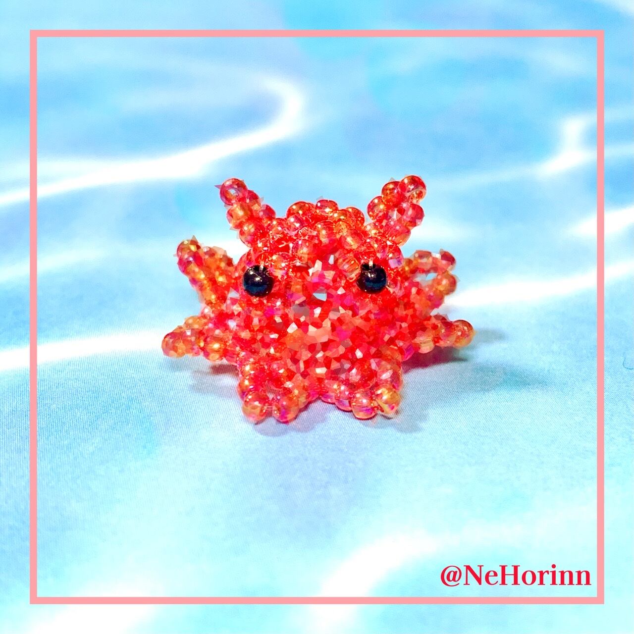 丸っこいフォルムが可愛らしいメンダコを丸小ビーズで表現しました。